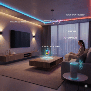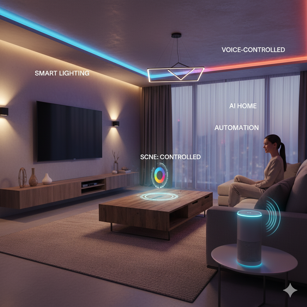 Smart Lighting & Voice-controlled Ambient Tech — mood, automation, home aesthetics.